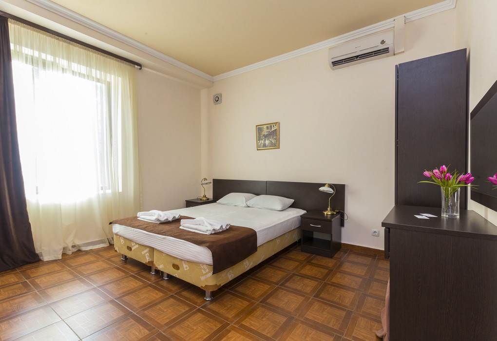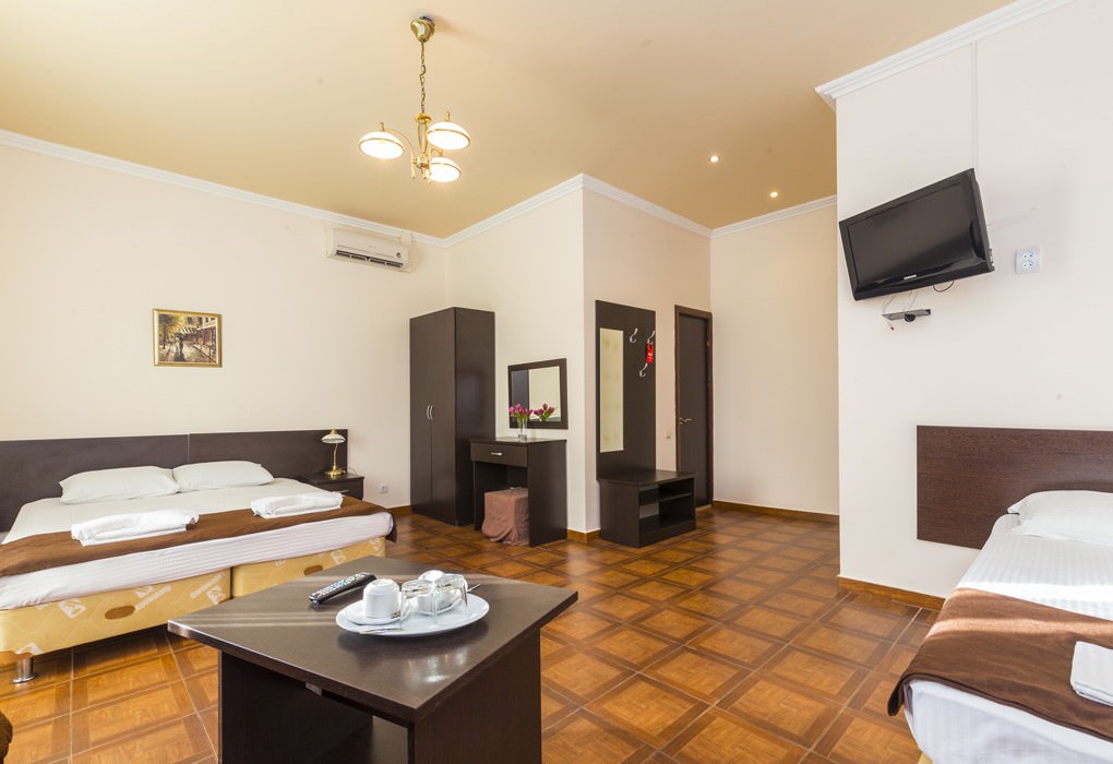 1 комната. 2 осн. места. В номере: телевизор; душ; туалет; 2-спальная кровать. 2 доп. места: Раскладной диван - может быть установлен без ограничения по возрасту.