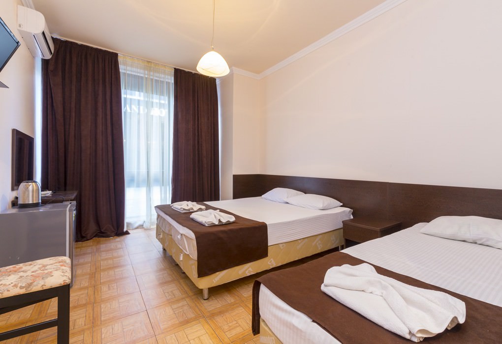 1 комната. 3 осн. места. номера расположены на 1-ом этаже. В номере: телевизор; кондиционер; душ; туалет; 2-спальная кровать; 1-спальная кровать. 1 доп. место: